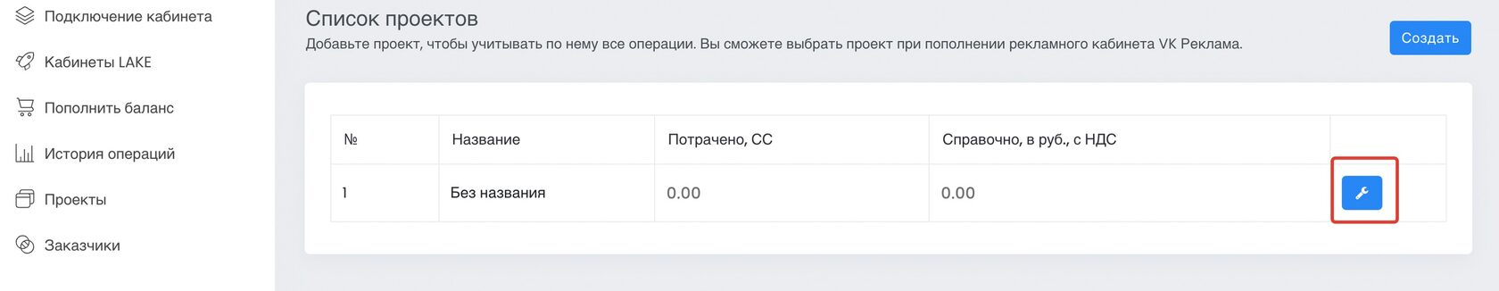 Дальше, либо возвращаетесь в раздел «Кабинеты LAKE» и нажимаете на иконку с графиком, либо в разделе «Проекты и Заказчики» переходите в настройки проекта (иконка гаечный ключ). В настройках проекта нажимаете на кнопку «Статистика».