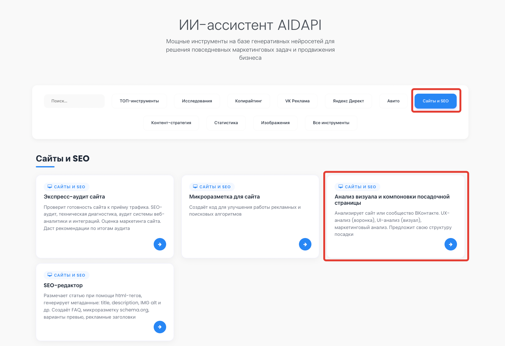 Достаточно вставить ссылку на сайт, запустить анализ и через несколько минут открыть готовый отчёт.