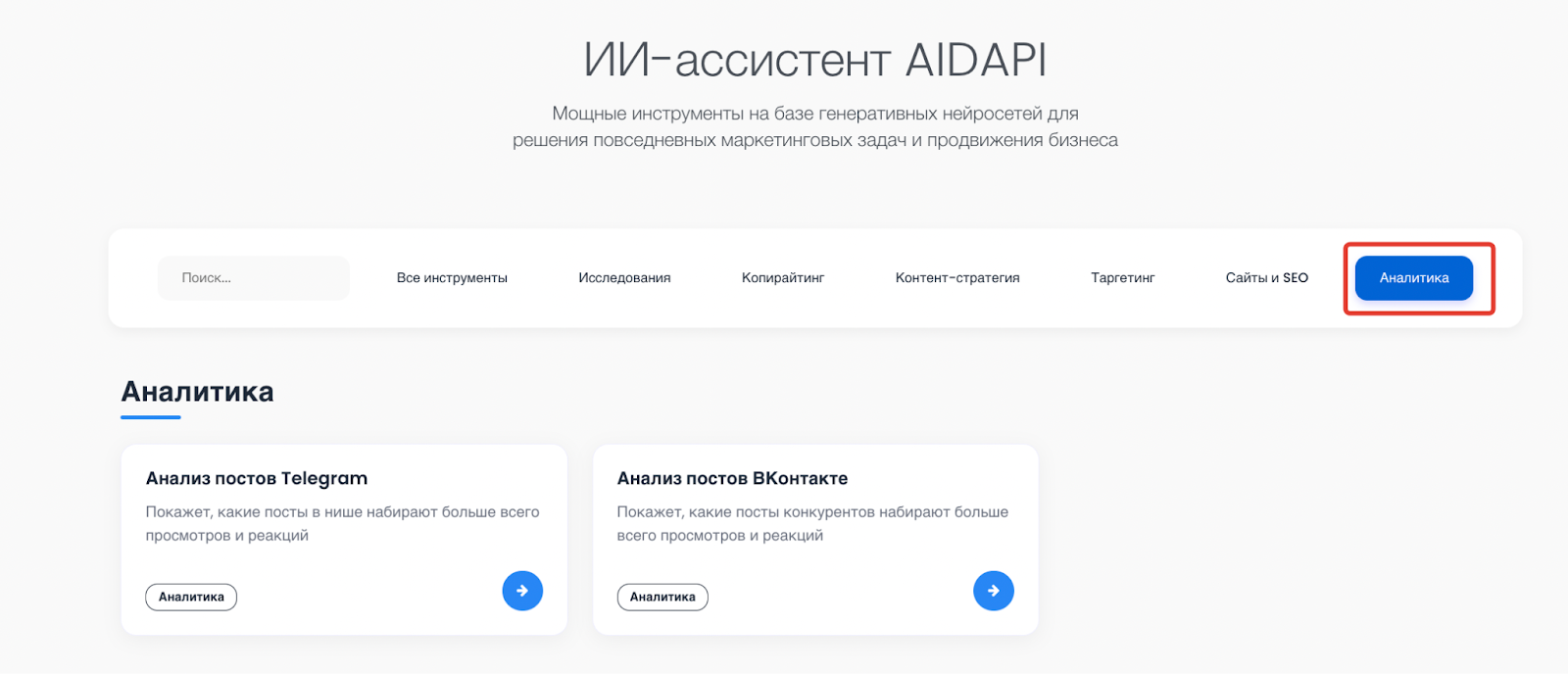 Где искать инструменты «Анализ постов ВКонтакте» и «Анализ постов Telegram»?