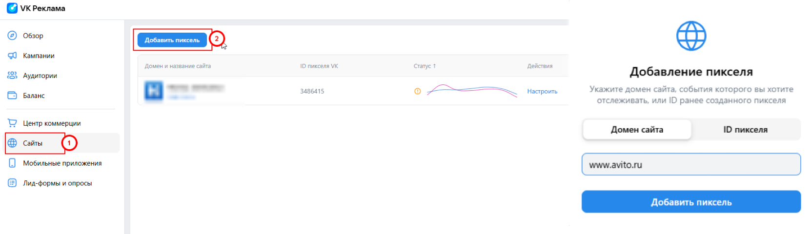 Важно! Пиксели устанавливаются в рекламном кабинете Авито на уровне объявлений. Для каждого типа события можно указать до 3 пикселей, но общее число пикселей на один креатив — не более 9.