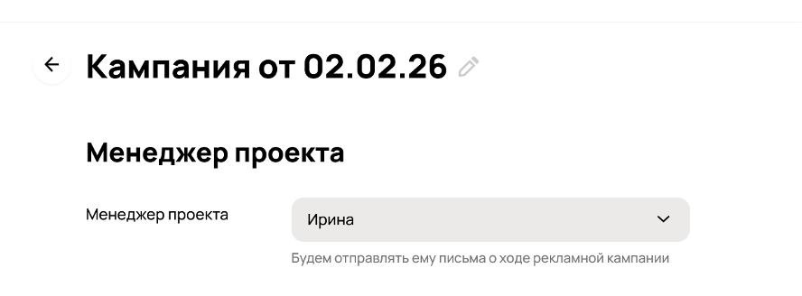 В поле «менеджер проекта» указывайте релевантного менеджера со стороны рекламодателя.