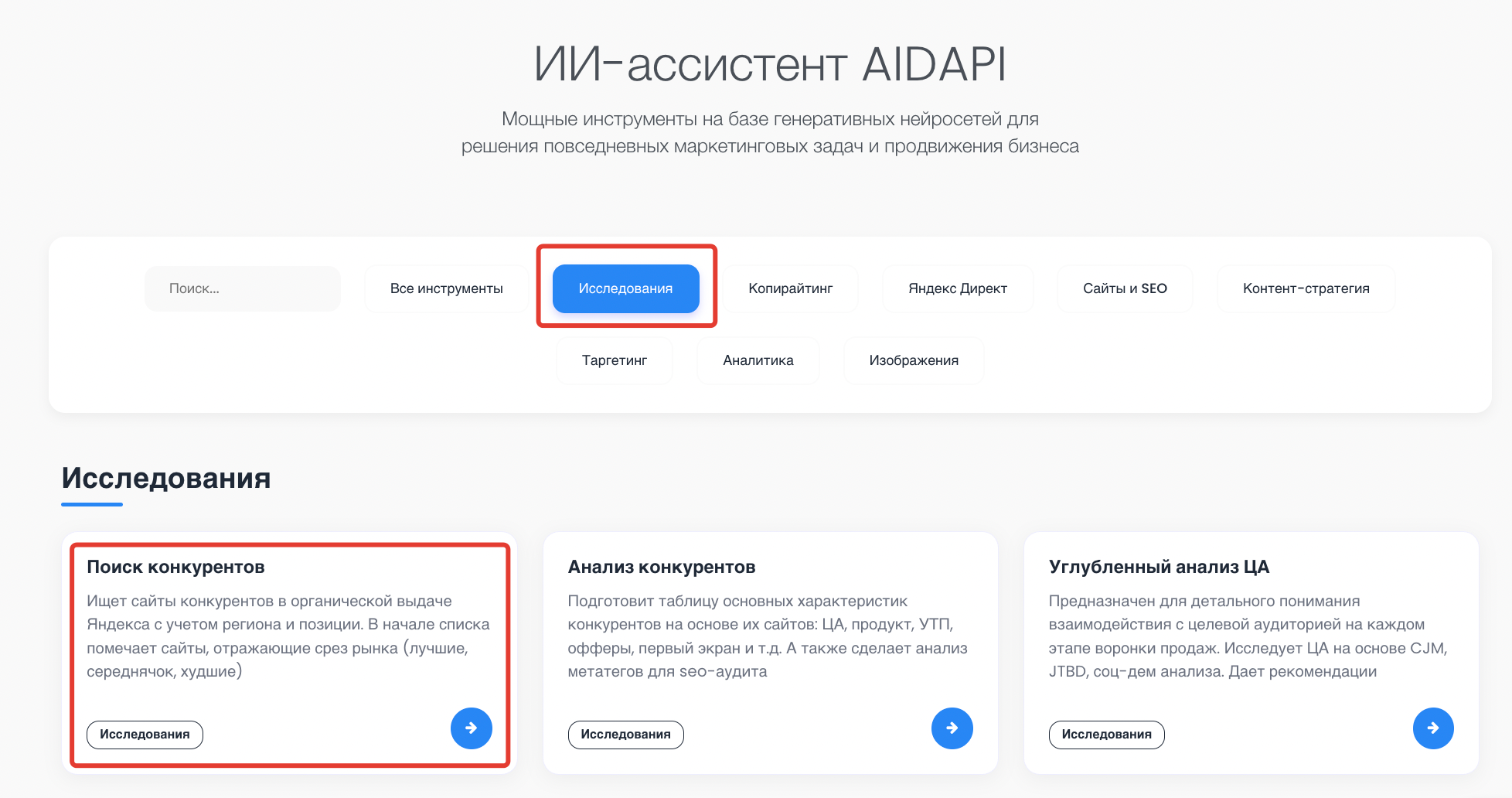 В дальнейшем, информацию из отчёта можно отправить в инструмент «Анализ конкурентов» и получить полноценный разбор рынка.