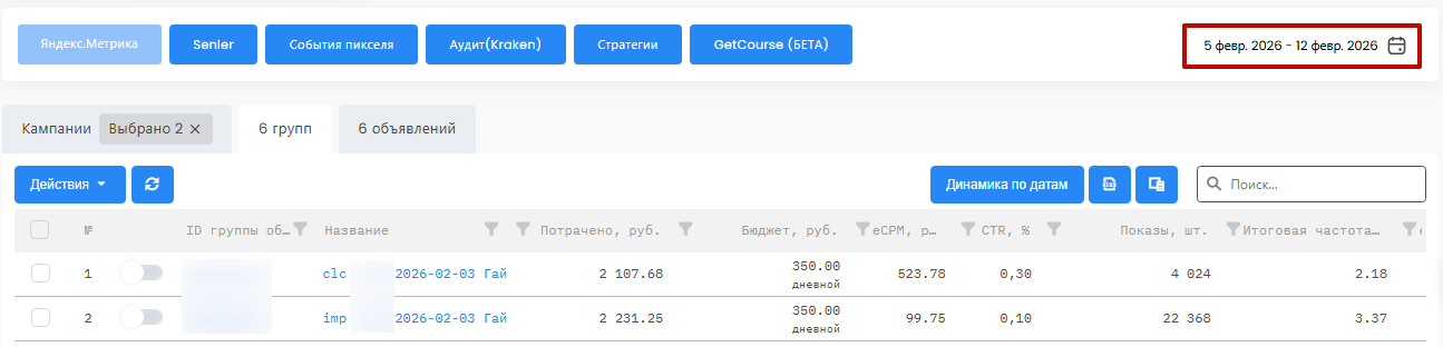 Медийку лучше запускать с помощью стратегии ставок «Максимум показов» и начинать с минимального CPM (например, 70 ₽), далее плавно повышать ставку. Резкое повышение — переплата. Слишком медленное — рост частоты. Жёсткое ограничение частоты + низкий CPM — недооткрут бюджета. Чтобы не делать это руками, можно использовать инструмент «Стратегии» в сервисе Е2
