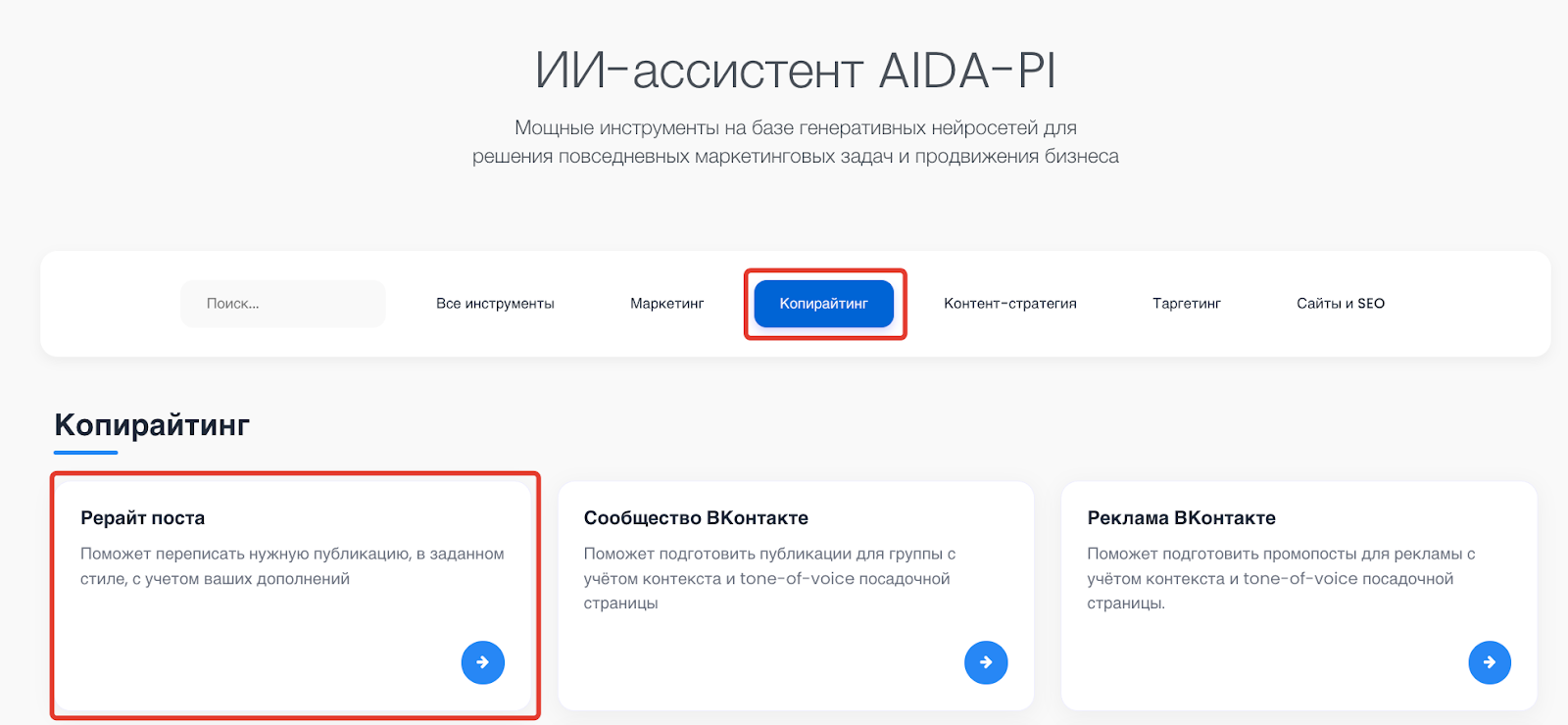Инструмент «Рерайт» ИИ-ассистента AIDA-PI – это незаменимый помощник в повседневной работе для контент-менеджера.