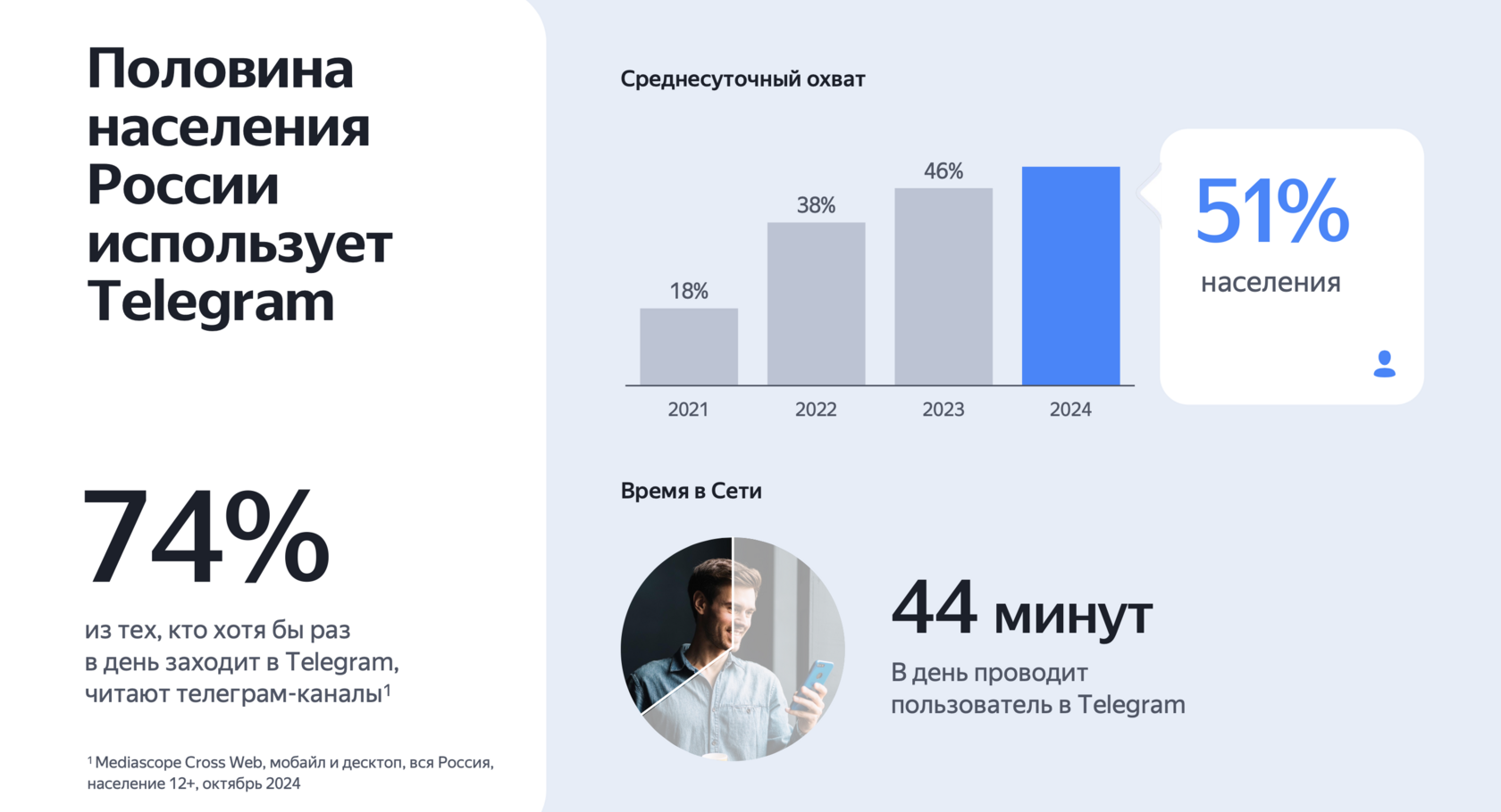 Формат также подходит компаниям, которые ранее не работали с Telegram из-за сложности размещений и отсутствия прозрачной аналитики.