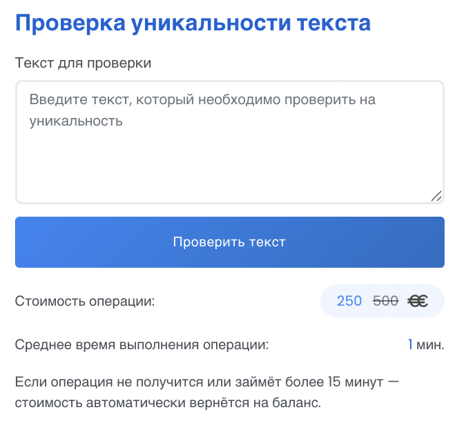 Инструмент мгновенно сравнивает заданный текст с открытыми источниками в интернете, показывает долю заимствований и даёт прямые активные ссылки на совпадения.