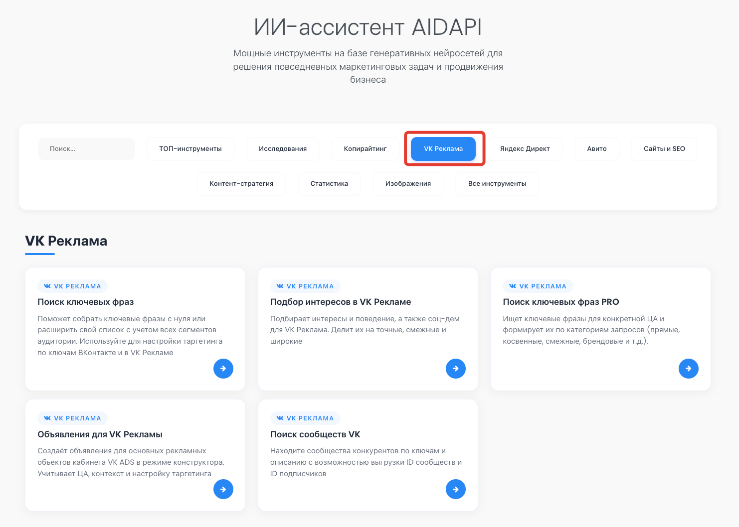 Как правильно заполнить описание проекта и какие тексты вы получите на выходе, подробно разобрали в статье: «Объявления для VK Рекламы: генерация текстов для основных рекламных объектов»