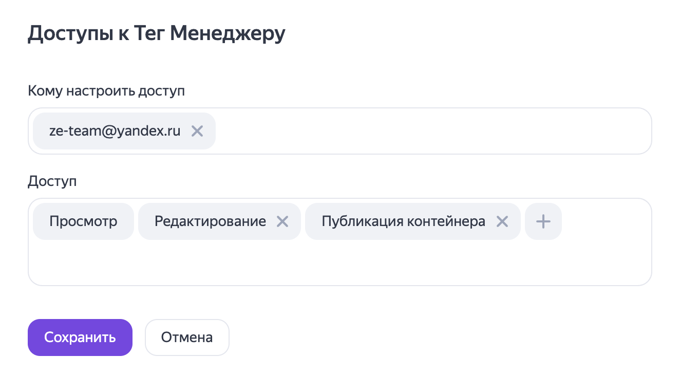 - Перейдите в раздел «Настройки → Доступ к Тег Менеджеру»